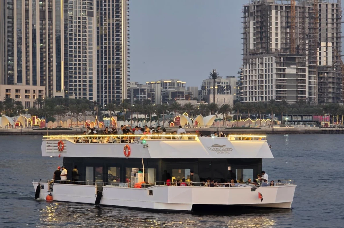 Двухпалубная дау отплывает от пирса Pier 7 и сразу ныряет под арки Sheikh Zayed Road, превращаясь в движущийся прожектор. Небоскрёбы выстраиваются в идеальную симметрию, а скрученный Cayan Tower выступает центром композиции. На верхней палубе сервируют ужин из хумуса, гриль-микса и свежих фруктов, под светом свечей можно делать снимки без вспышки. Многие отзывы советуют брать индивидуального гида, который за час объяснит, как построить таймлапс. Финал маршрута — проход мимо колеса Ain Dubai, когда подсветка меняет цвет каждую минуту и дарит материал для таймлапса.