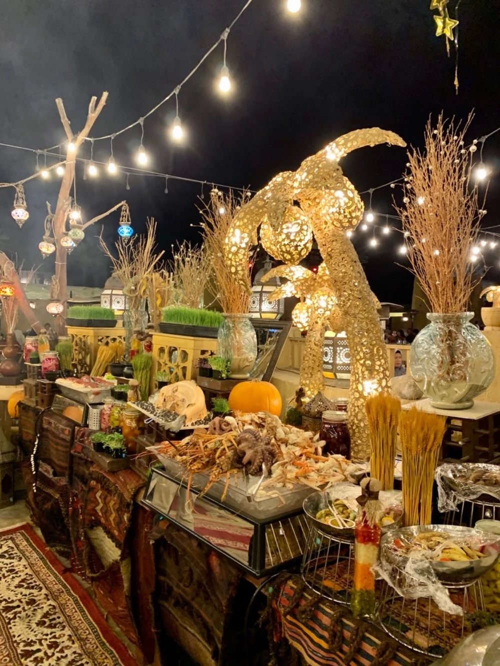 Когда моторы стихнут, вас встречают финики, gahwa с кардамоном и аромат удового дыма, укутывающий лагерь мягкой сладкой вуалью. Длинные подушки лежат на коврах, а низкие столики мерцают отражениями от медных ламп.
